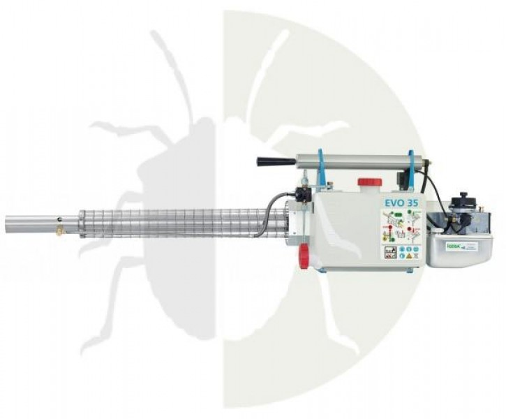 Termonebulizatorul EVO 35 este un echipament mai usor decat similarul lui TF 35, portabil si economic. Utilizat pentru crearea de volume mari de fum, dar cu particole foarte mici. Aplica formulari pe baza de ulei cu tubul standard cu care este dotat. Exista varianta de achizitionare a tubului pentru solutii pe baza de apa.